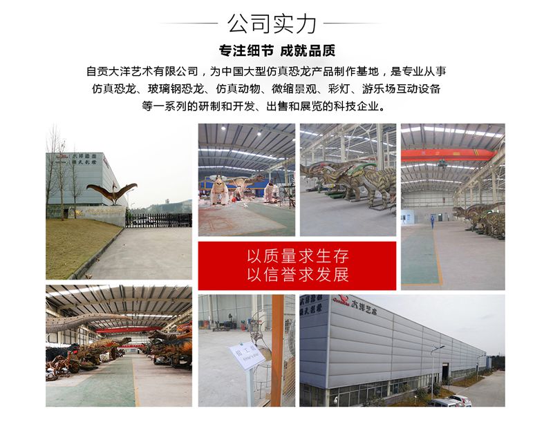 備注:我們所制作的仿真恐龍展品和骨架模型展品被中國科學(xué)院古脊椎所鑒定為“優(yōu)秀科研作品”被譽(yù)為”侏羅紀(jì)“的在現(xiàn)者。我們將秉承客戶至上的理念,為客戶設(shè)計(jì)和制造恐龍展品,并根據(jù)客戶的要求提供3年以上質(zhì)量保證,并長期為客戶提供培訓(xùn)安裝維修人員和配件等售后服務(wù),為顧客解除了恐龍展品長期使用展覽的后顧之憂。