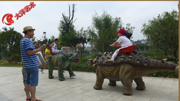 動(dòng) 作:投幣后觀眾,張嘴叫聲、頭左右、四肢走動(dòng)(方向盤控制)、尾左右擺動(dòng)。背上可騎坐小孩隨龍走動(dòng)娛樂