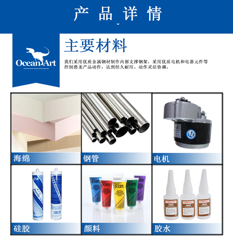 4、采用優(yōu)質(zhì)電機(jī)和電器元件控制恐龍展品動作,達(dá)到經(jīng)久耐用動作靈活協(xié)調(diào)的效果。