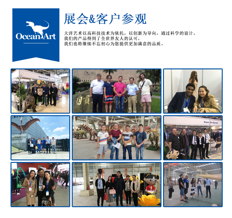 備注:我們注重展覽和產(chǎn)品本身的文化底蘊(yùn)及科技含量,并且關(guān)注產(chǎn)品與觀眾的互動性、娛樂性和參與性,因此,我們先后推出了騎乘恐龍、打斗恐龍組、生蛋龍、蓋章恐龍、恐龍衣服等一系列,科技含量高,故事情節(jié)豐富,娛樂參與性極強(qiáng)的產(chǎn)品,深受廣大消費(fèi)者的青睞。除了產(chǎn)品的研發(fā)與制造,公司的營銷核心是一套成熟的、創(chuàng)新性的展覽理念,并在海內(nèi)外都取得了廣泛的成功!
