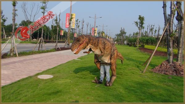 動(dòng) 作:人穿在恐龍身體里面,控制恐龍動(dòng)作