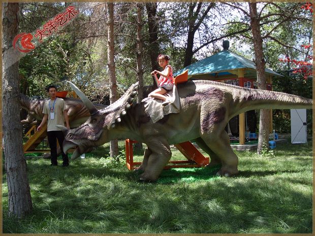2)互動娛樂:互動娛樂恐龍4只至8只,主要作用——針對小孩娛樂(典型的坐騎恐龍,坐騎行走恐龍,投幣下蛋恐龍等等…..);